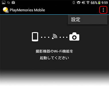 1.PlayMemories Mobileを起動し、右上の「設定」をタップします。